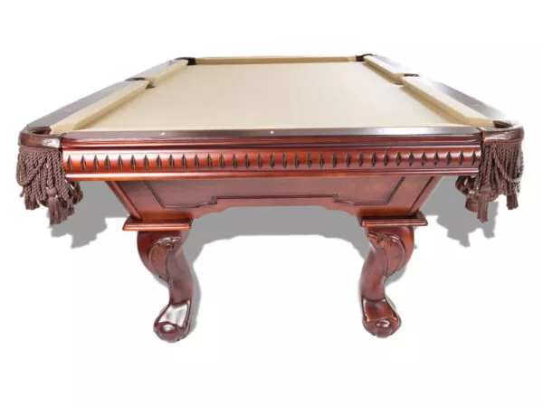 The Cape Town pool table is crafted out of solid African hardwood. The dentil molding on the blinds and sturdy construction makes this pool table one of our top-selling models. This Cape Town billiard table comes in two finishes, Mahogany or Mocha. This pool table will be a statement in any billiards room.